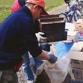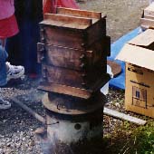 ハゼの実を蒸しているところ